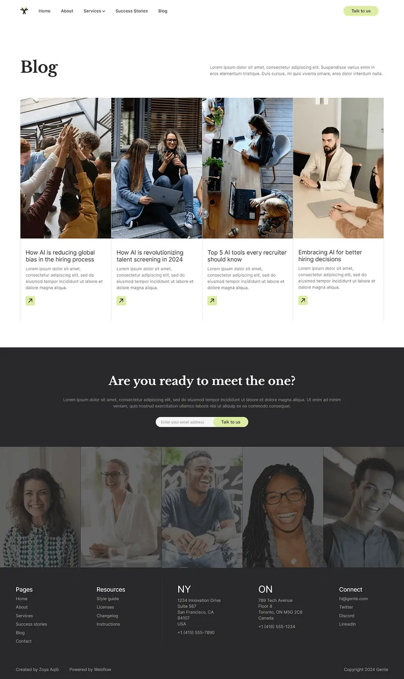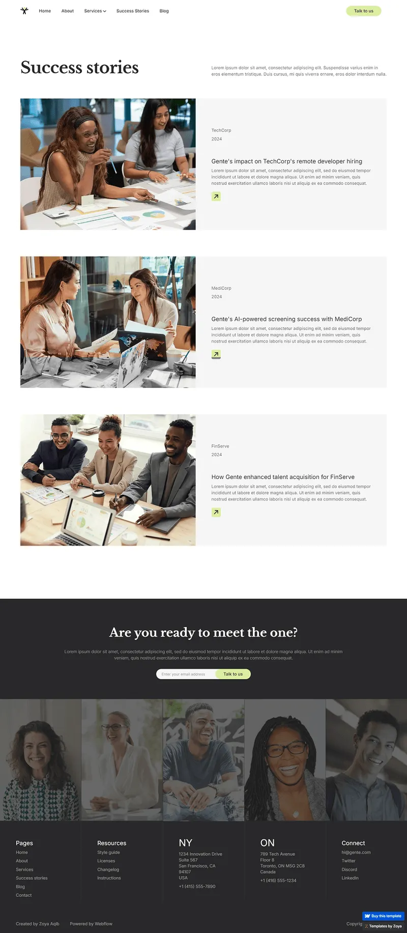From integrated Blog CMS and Case Studies CMS to a user-friendly Contact page, Gente includes everything you need to showcase your services, build credibility, and engage with clients efficiently.